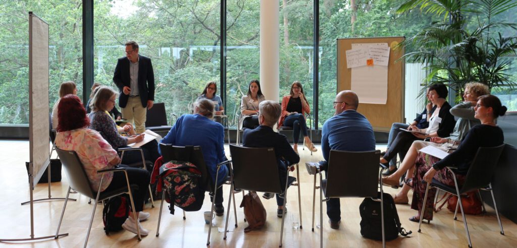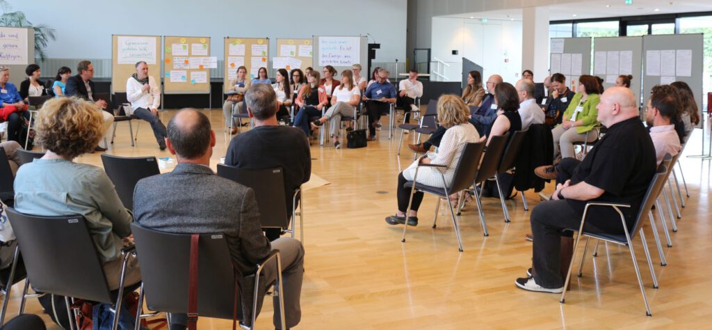 Die Galerie der Protokolle füllte sich zusehends und lud ein, zu schauen, womit sich die anderen Gruppen beschäftigt hatten. In der Abschlussrunde wurden die Energie des Tages, das Gewinnen neuer Ideen und Ansichten, das Knüpfen neuer Kontakte und das Stärken bestehender Netzwerke als bereichernd empfunden – wohl wissend, dass es Themenfelder und Aufgaben gibt, die in Zukunft noch mehr Fokus und Ressourcen brauchen.