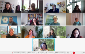 Vorgestellt wurde sowohl die webbasierte Variante, die zur Onlineberatung in Pandemiezeiten entwickelt wurde, als auch das ursprünglich analoge „Spielbrett“, das den Teilnehmerinnen auf Wunsch zur Verfügung gestellt wird. Charakteristisch ist das Erscheinungsbild der Standortanalyse im Format einer (Bienen)Wabe, die so den interdisziplinären Austausch am „runden Tisch“ visuell verdeutlichen soll.