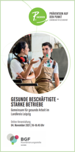 Am 4. November 2021 findet die Veranstaltung „Gesunde Beschäftigte – Starke Betriebe. Gemeinsam für gesunde Arbeit im Landkreis Leipzig” im Online-Format statt.