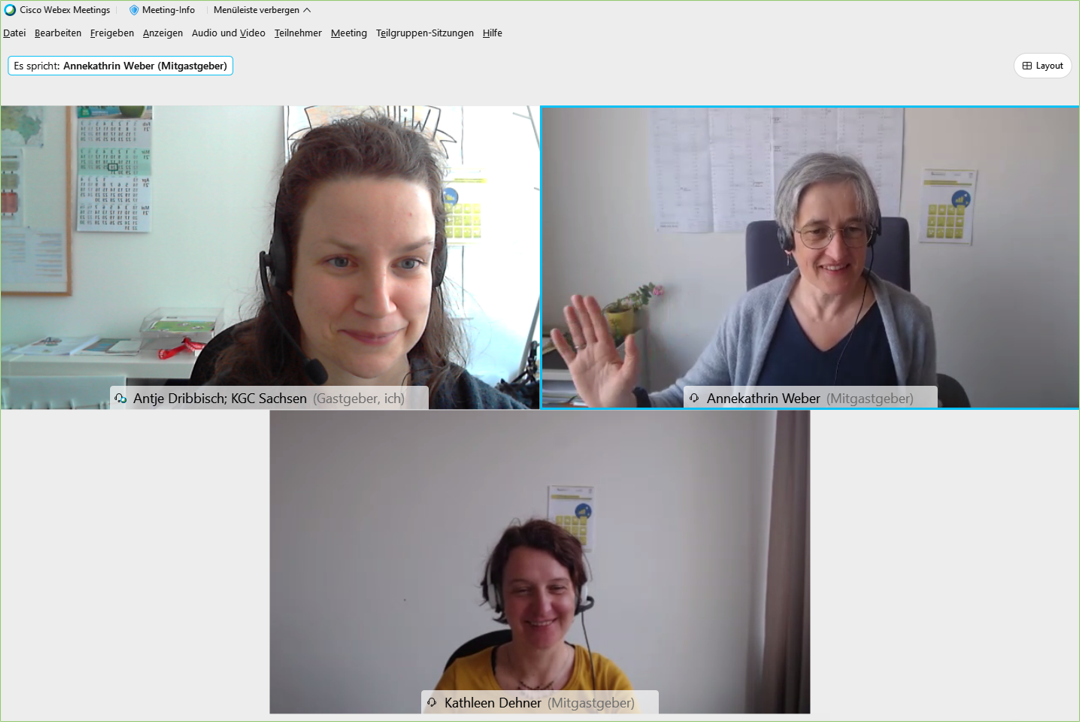 Die meisten Beteiligten waren sich am Ende einig: Ein praxisnaher Austausch und methodische Vielfalt funktionieren auch digital – nichts ist unmöglich, einfach ausprobieren, dazu lernen und sich weiterentwickeln – ganz im Sinn der Good Practice-Kriterien. Die KGC Sachsen nahm das positive Feedback auf und wird in Zukunft definitiv noch weitere dieser Formate für alle Interessierten anbieten!
