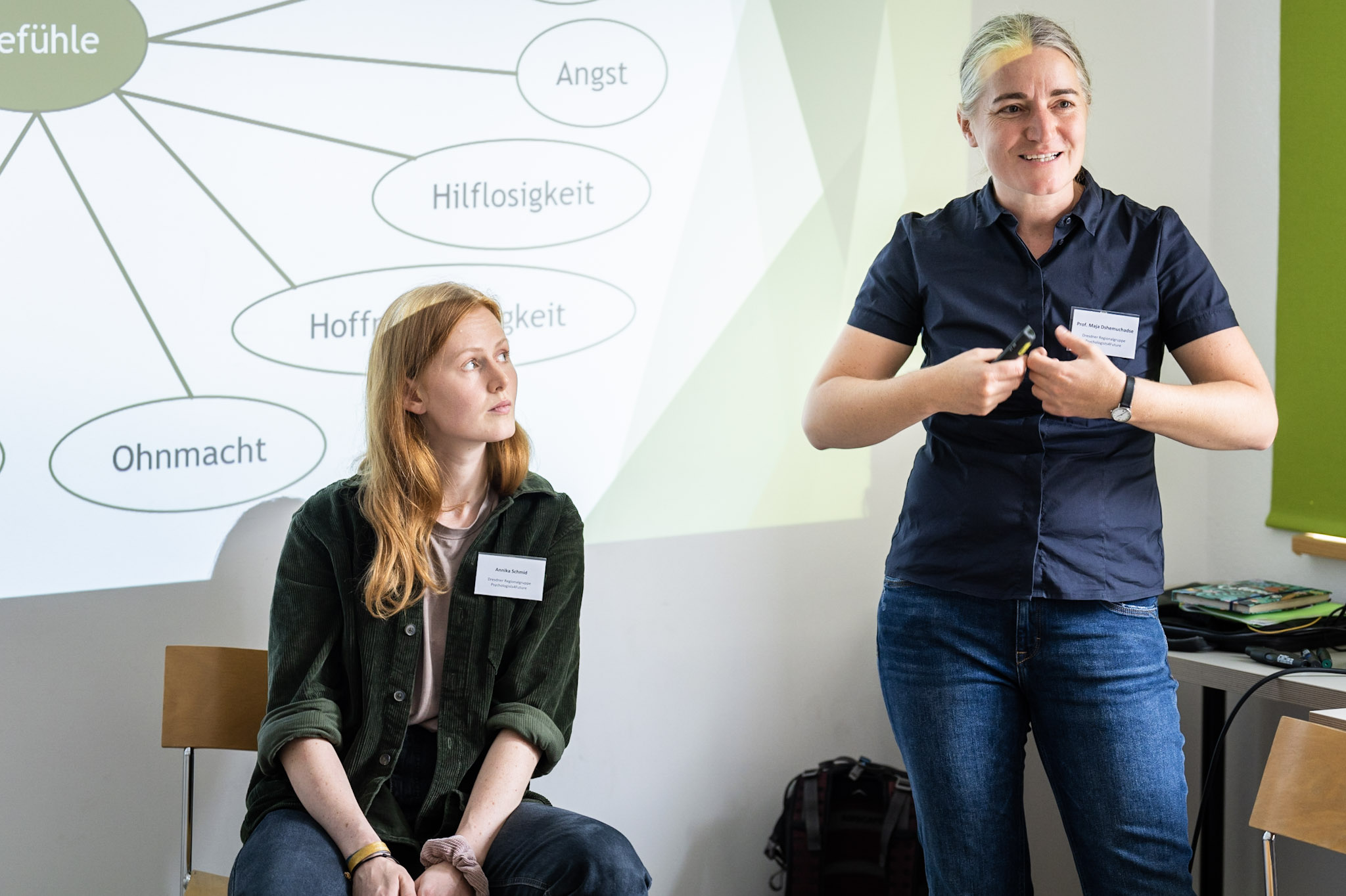 „Klimakrise und psychische Gesundheit“ lautete der Titel des zweiten Workshops, in dem Prof. Maja Dshemuchadse und Annika Schmid von der Dresdner Regionalgruppe Psychologists4Future gemeinsam mit den Teilnehmenden darüber nachdachten, wie Klimaresilienzstrategien entwickelt werden können. Diese sollen einen langfristigen konstruktiven Umgang mit dem schwer greifbaren Phänomen Klimakrise und seinen Auswirkungen ermöglichen. Ein wichtiger betrachteter Aspekt war dabei, inwieweit die Kompetenzen der Älteren in der Bewältigung von Krisen viel mehr genutzt werden könnten und sich ein Austausch der Generationen anregen ließe.