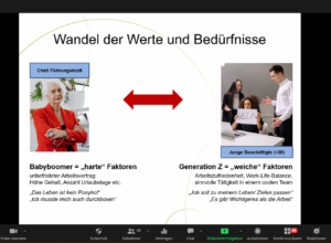 Tobias Benzin von HFA BGMplus machte in seinem Einführungsvortrag auf den Wandel der Werte und Bedürfnisse der Arbeitnehmenden aufmerksam. Neben den harten Faktoren wie Einkommen und Urlaubstagen sehen insbesondere junge Beschäftigte vor allem weiche Faktoren wie Arbeitszufriedenheit, ein angenehmes Teamklima und sinnvolle Tätigkeiten als ausschlaggebend an, um bei einem Arbeitgebenden zu bleiben (siehe Bild). Hier spielt auch die Einführung und Umsetzung des Betrieblichen Gesundheitsmanagements (BGM) eine wichtige Rolle. Gerade Angebote zur betrieblichen Gesundheitsförderung, das Augenmerk auf Arbeitsschutz und auch die Analyse der Führungs- und Teamkultur bieten viel Potenzial für die Bindung von Mitarbeitenden an ein Unternehmen.