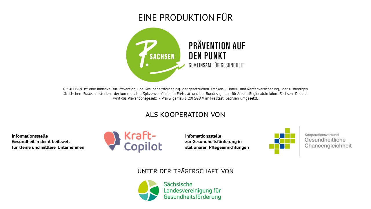 Selbstfürsorge: Hier und Jetzt! Ist psychosoziale Gesundheit ein Selbstläufer oder ein Kraftakt? # ÄLTERE MENSCHEN # PFLEGENDE ANGEHÖRIGE – lautete die Leitfrage der Online-Veranstaltung am 6. Juli 2023. Die Veranstaltung wurde in Kooperation der Informationsstelle Gesundheit in der Arbeitswelt für KMU, der Informationsstelle zur Gesundheitsförderung in stationären Pflegeeinrichtungen, des Projektes Kraft-Copilot sowie der Koordinierungsstelle Gesundheitliche Chancengleichheit (KGC) Sachsen unter dem Dach von P. SACHSEN durchgeführt.