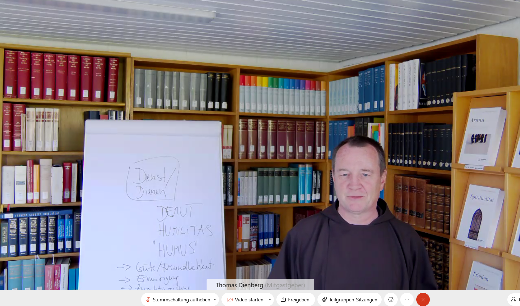 Kapuzinerpater Dienberg referierte im zweiten Teil des Online-Seminars zur „Kunst des Dienens“. Wie gelingt gesunde Führung? Wie lässt sich die Verantwortung für die Gesundheit im Unternehmen umsetzen?