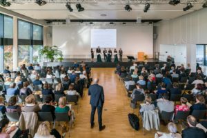184 Teilnehmende kamen zur Premiereveranstaltung, darunter Vertreterinnen und Vertreter der Lebenswelten, der Krankenkassen und der kommunalen Verwaltung, Mitarbeitende von Arbeitsagenturen, Menschen mit Querschnittaufgaben, wie z. B. Gesundheitsförderung und Prävention, Amtsleitungen, Dezernentinnen und Dezernenten, Politikerinnen und Politiker sowie Wissenschaftlerinnen und Wissenschaftler.